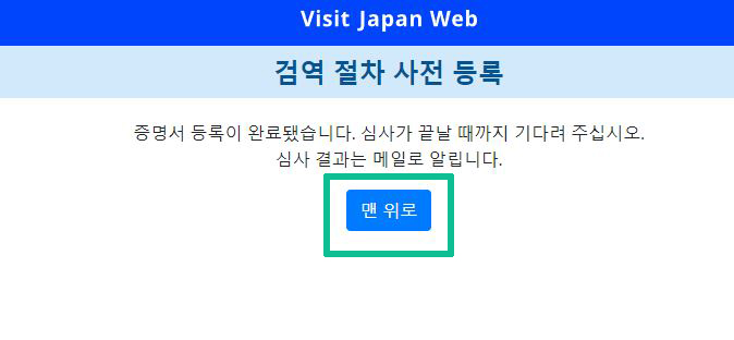 세관신고 까지 마치면 비지트재팬웹 사전등록은 완료된 것이며 이제 검역절차사전등록 완료만 기다리면 된다.