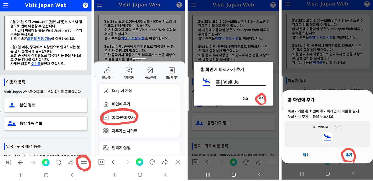 핸드폰에 비지트재팬웹 바로가기 만들기